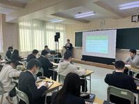 11月12日(水)、1年生が総合的な探究の時間において、地域研修を実施しました。商工会について講義で学んだ後、POP作成をグループ活動で行いました。